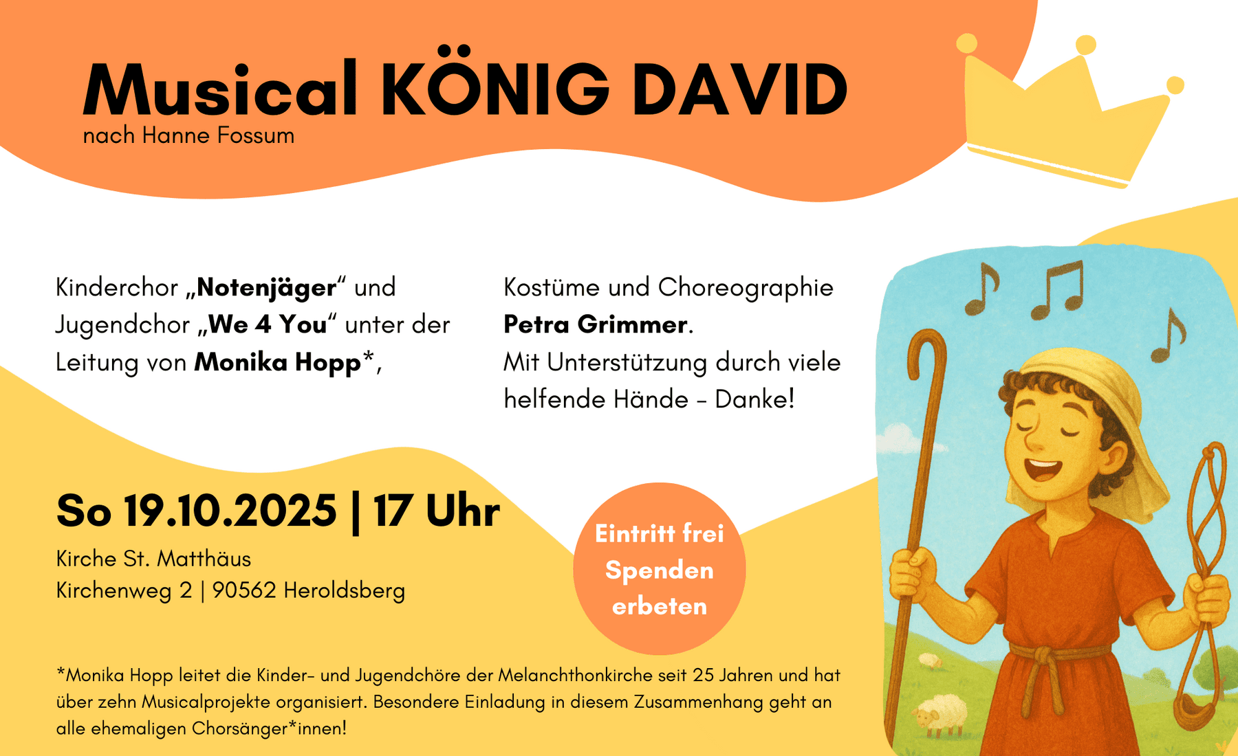 Musical König David am So., 19.10., 17 Uhr in der Kirche St. Matthäus, Kirchenweg 2